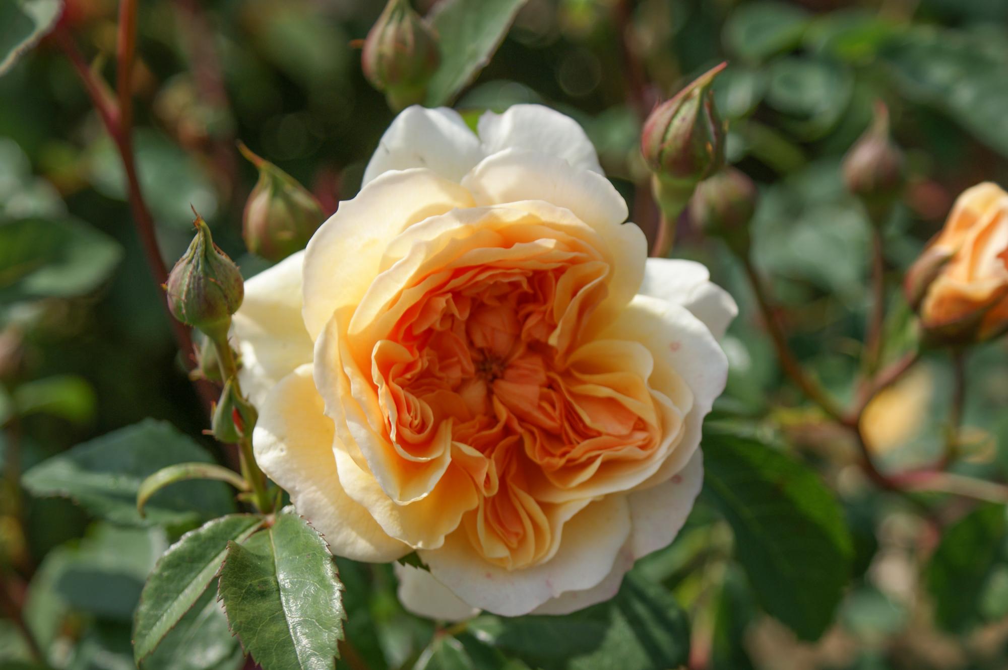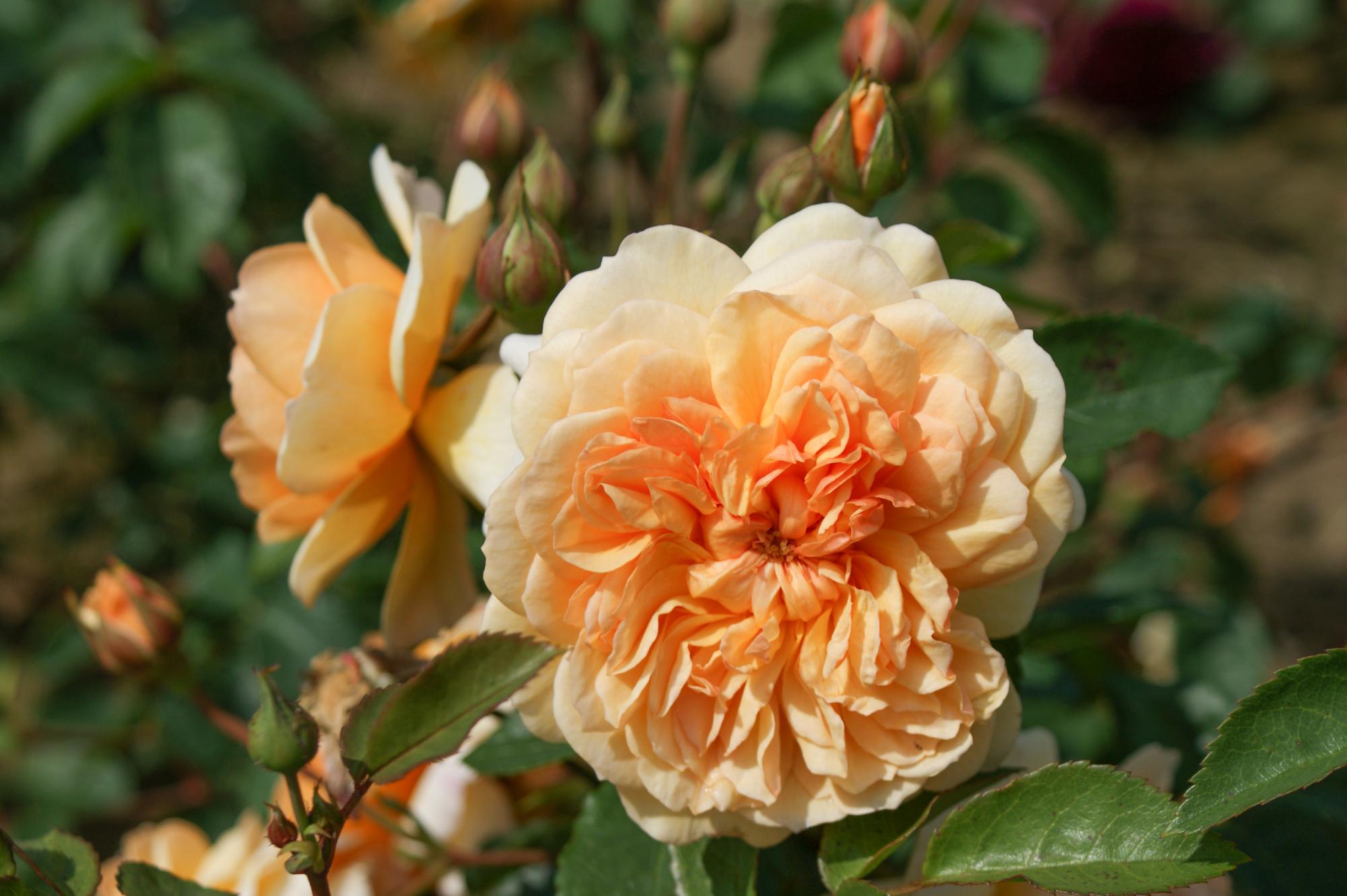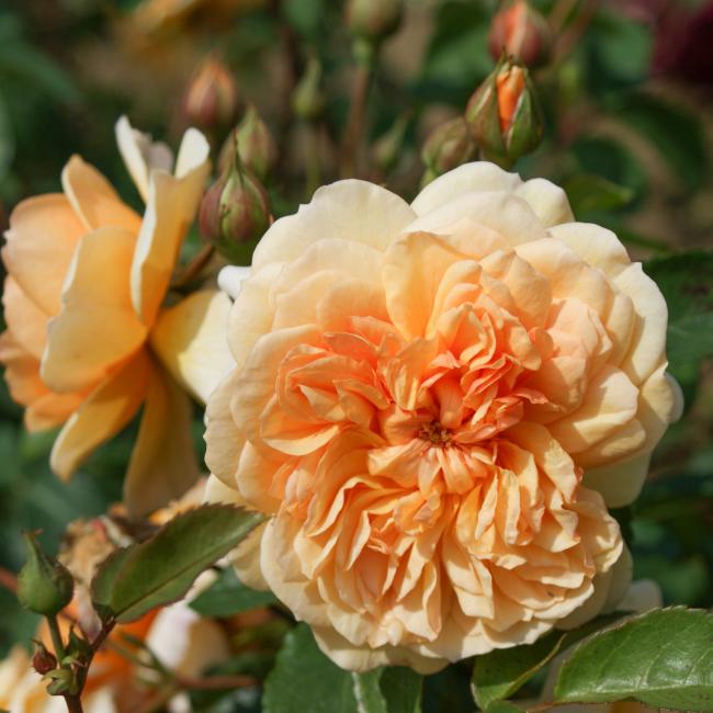 Deze roos bloeit met grote abrikoos tot licht abrikoos kleurige bloemen. Is dik gevuld en bloeit het hele seizoen goed door.
