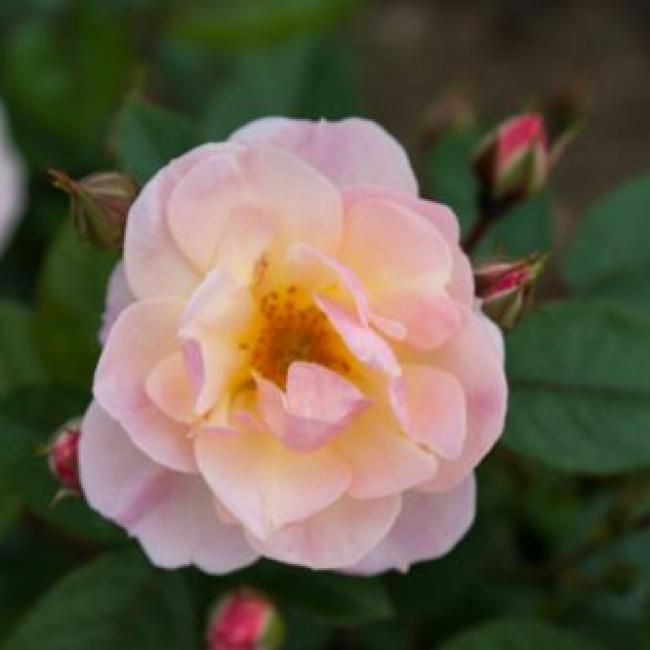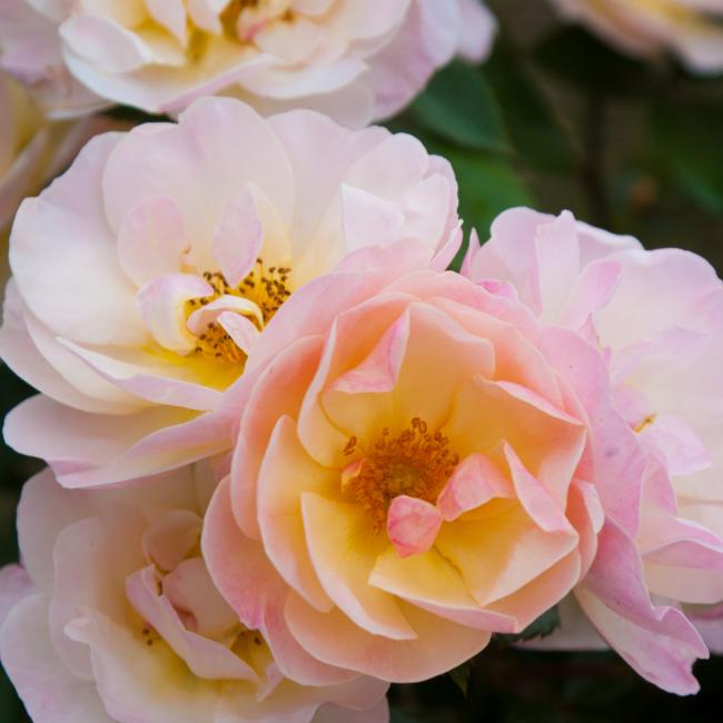 Creme- roze enkelvoudige bloemetjes staan in dikke trossen de hele zomer aan deze lage heester roos. Een zeer gezonde, en dankbare roos die goed tot haar recht komt in een perk, mar ook in pot of als lage haag. Een absolute topper!