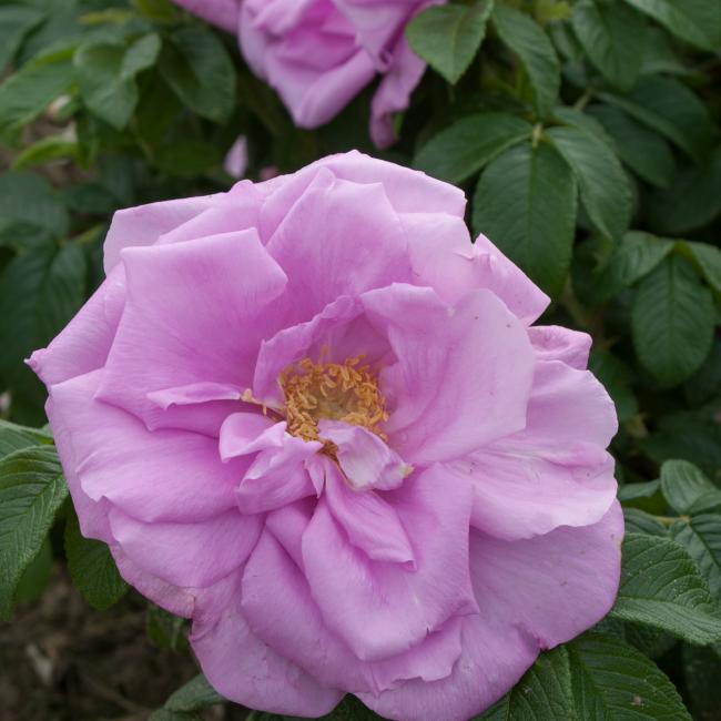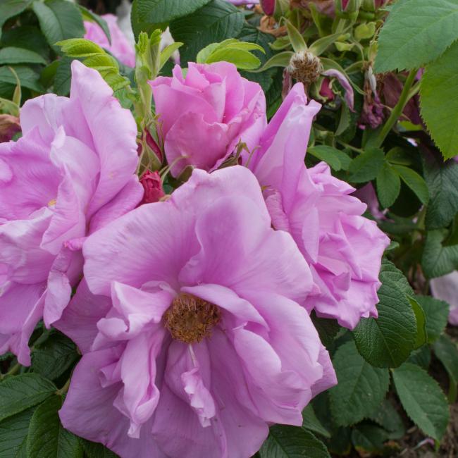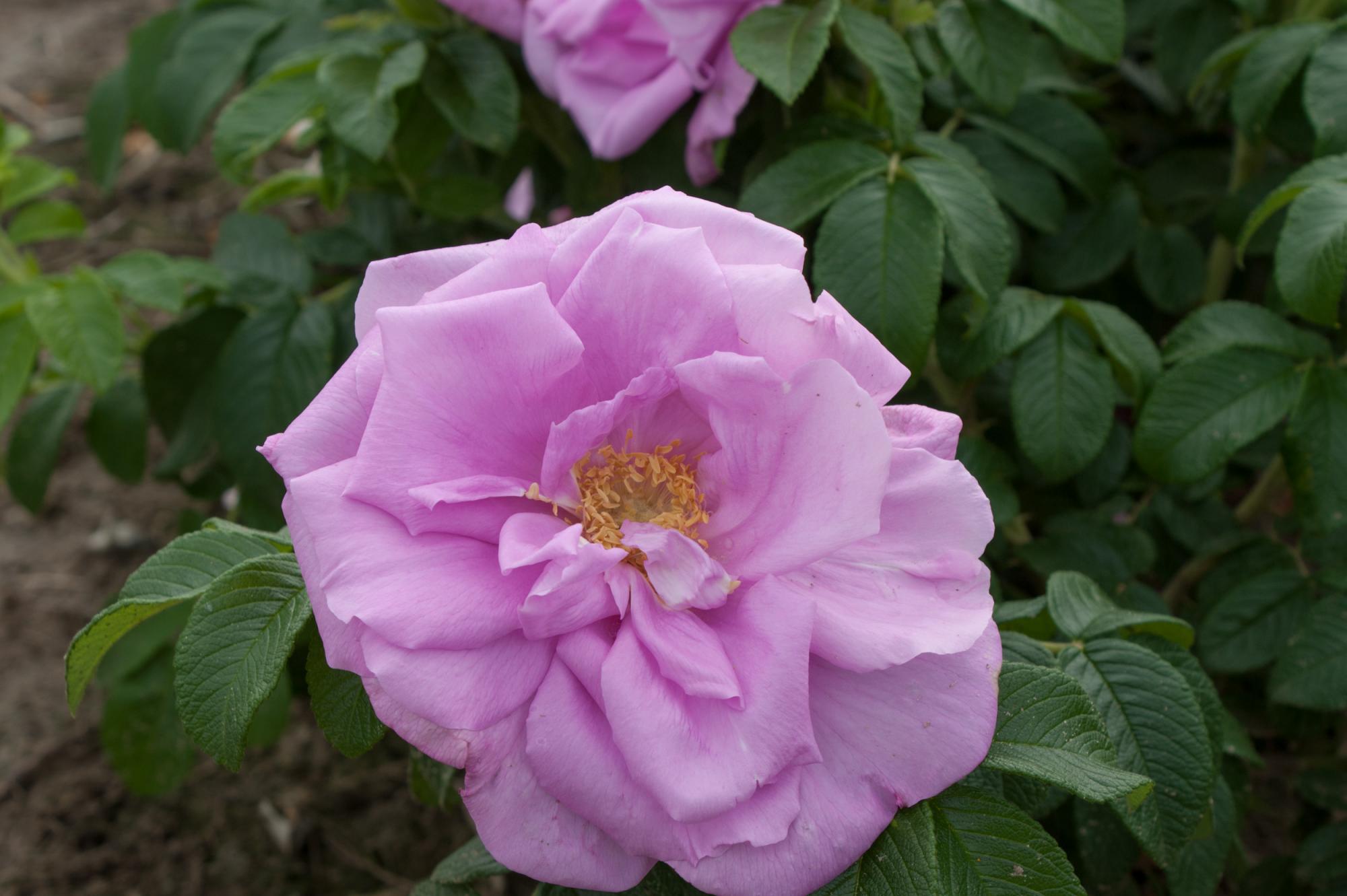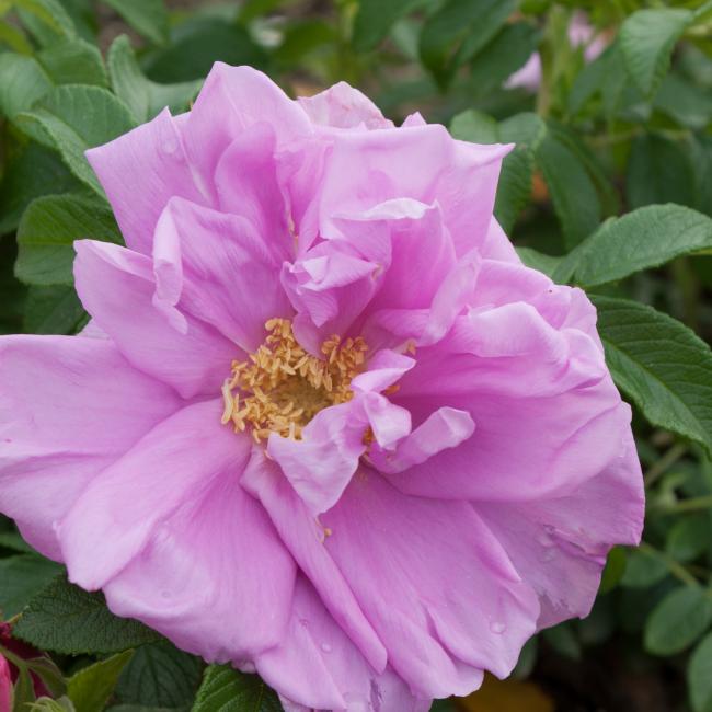Kleine heesterroos met helder rozen bloemen die half gevuld zijn. De bloemen zijn ca 6 cm groot en komen met 5-8 rozen aan een steel. Per m2 meter 4 rozen poten.