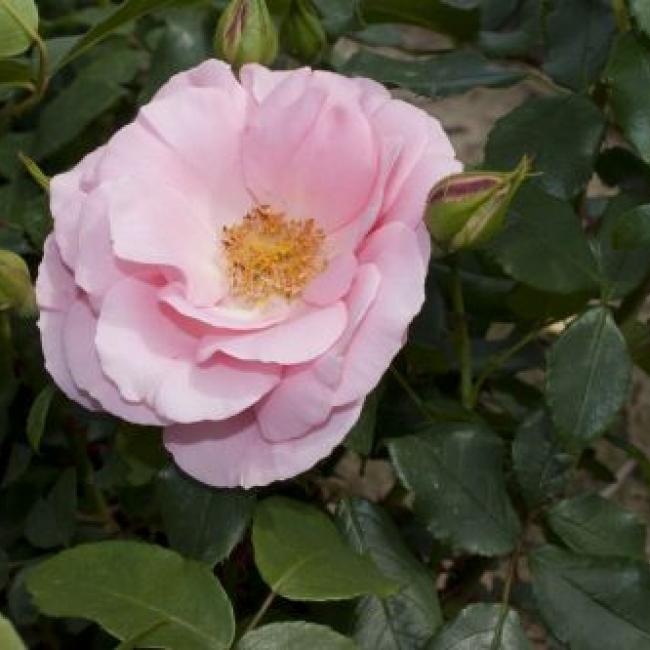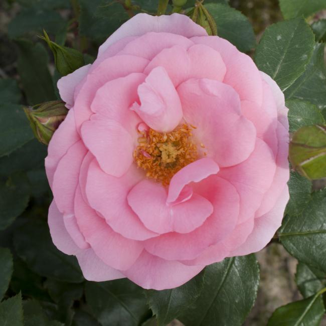 Deze bossige trosroos bloeit met trossen kleinere bloemen. De roze bloemen zijn licht gevuld en vouwen zich helemaal open. De meeldraden zijn zichtbaar. Het is een goede doorbloeier en is van nature een zeer gezonde roos, die goed tegen alle weersomstandigheden kan. Heeft donkergroen glanzend blad. Geeft wat langere stelen en groeit breed. Is geschikt als snijroos.