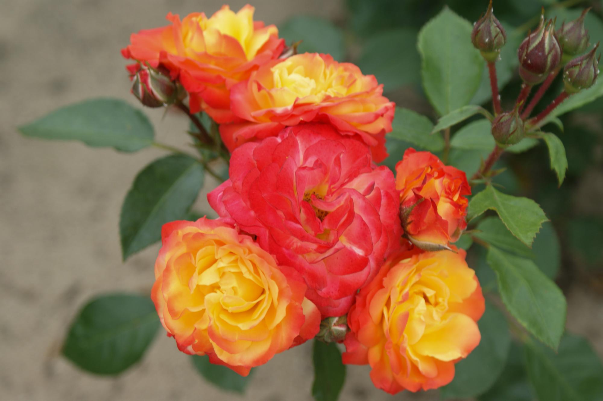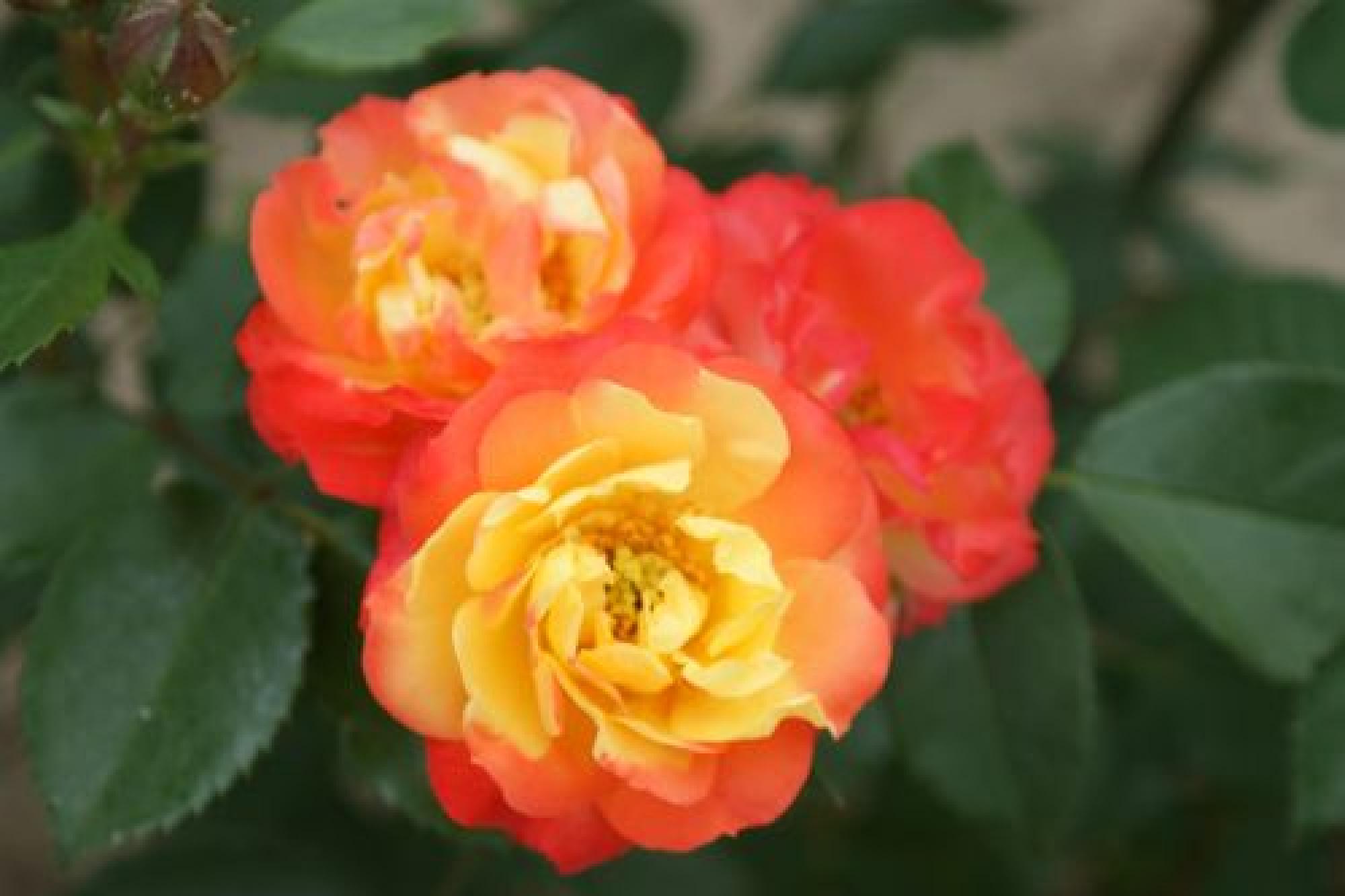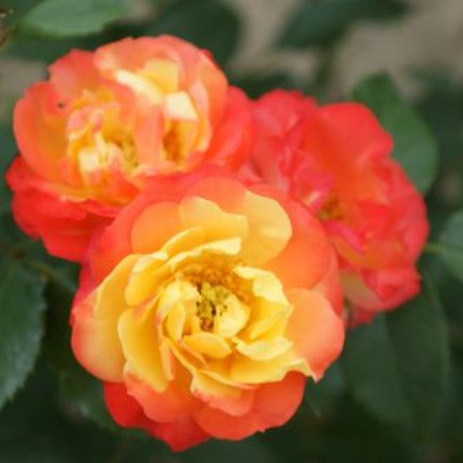 Dicht glanzend groen blad aan een rechte struik. De kleinere gevulde bloemen staan in trossen die langzaam verbleken aan de stelen. Bloeit de hele zomer door en is van oorsprong een opvallend gezonde roos die ook erg geschikt is om in pot te zetten.