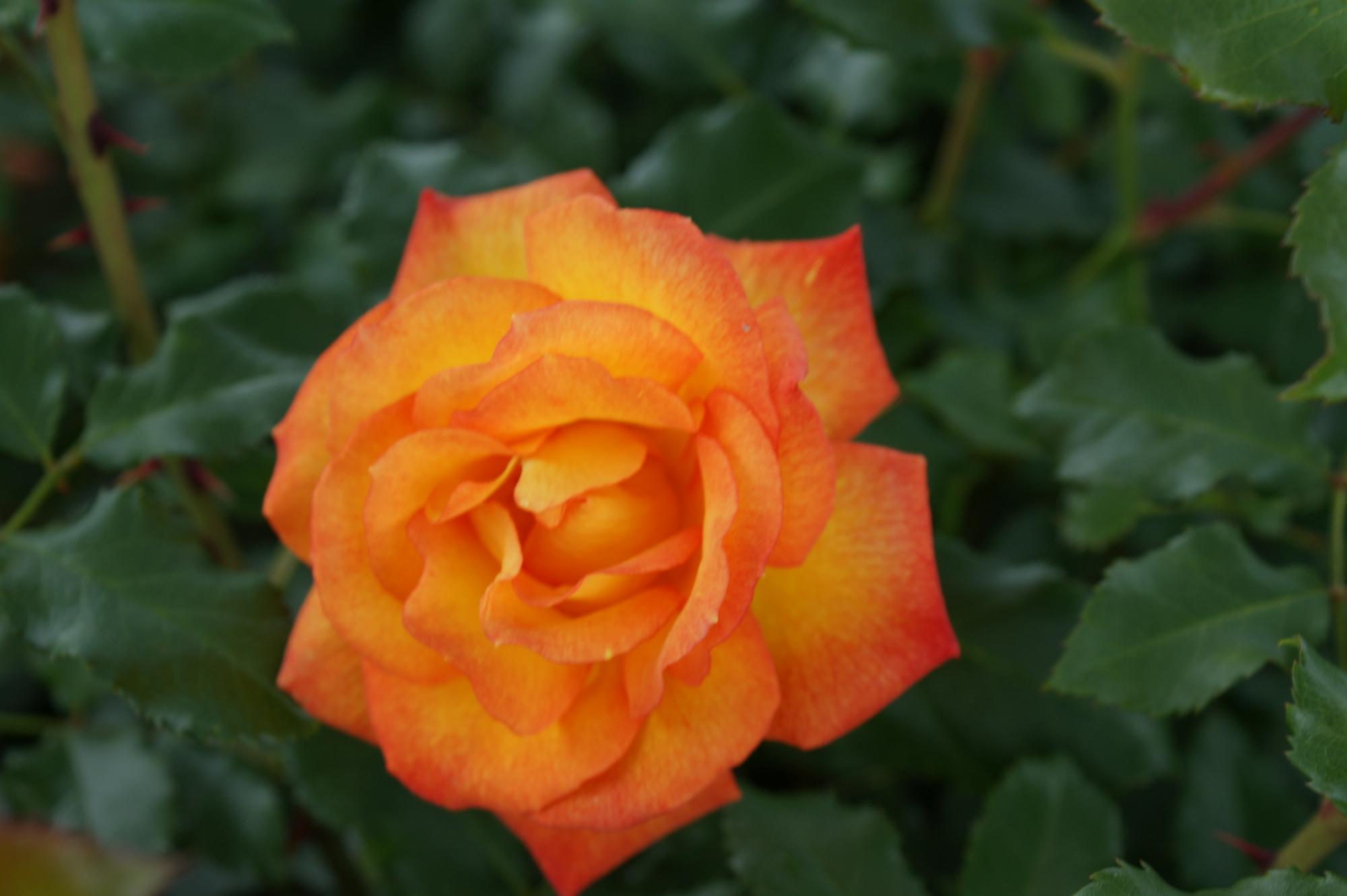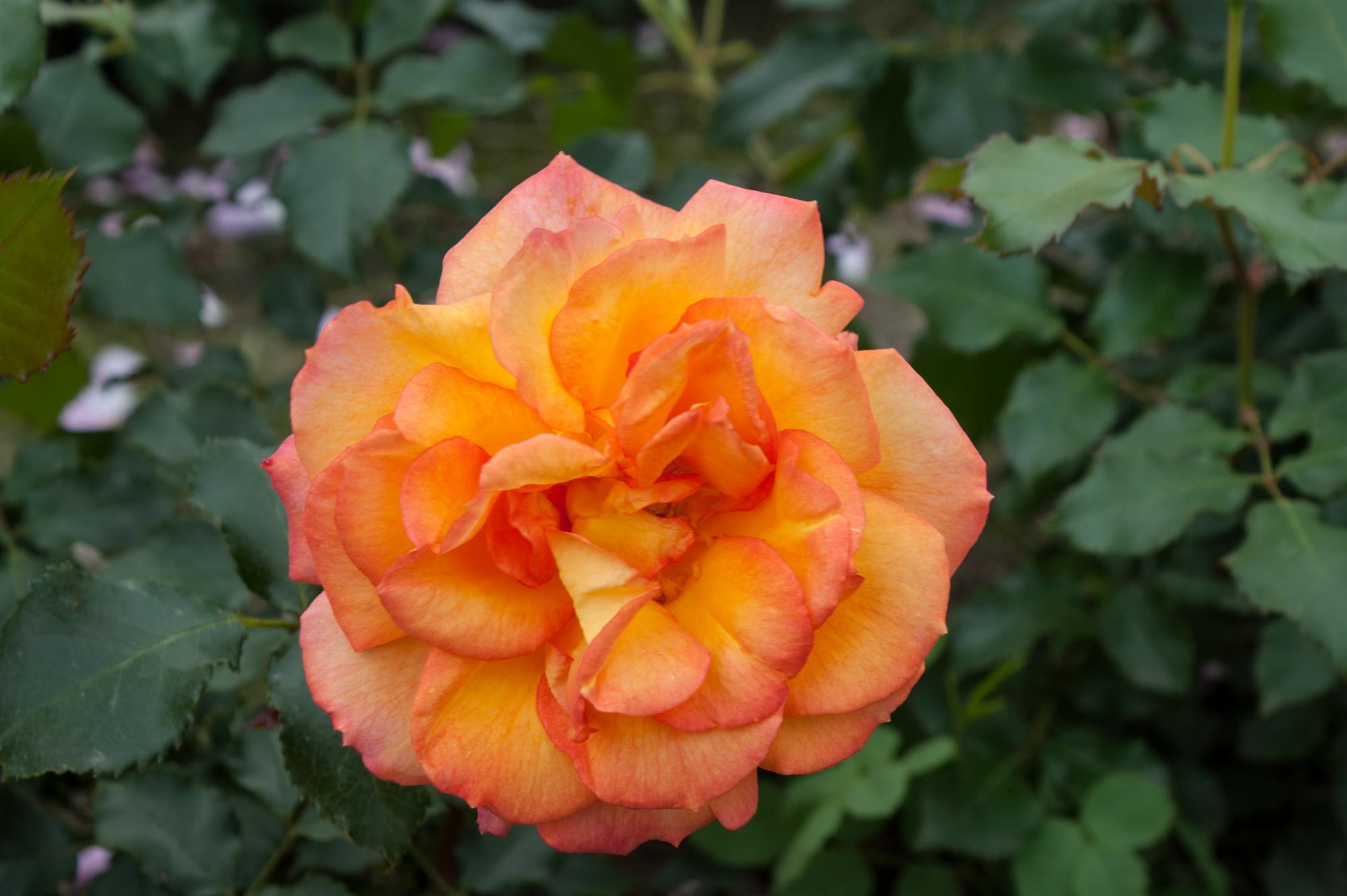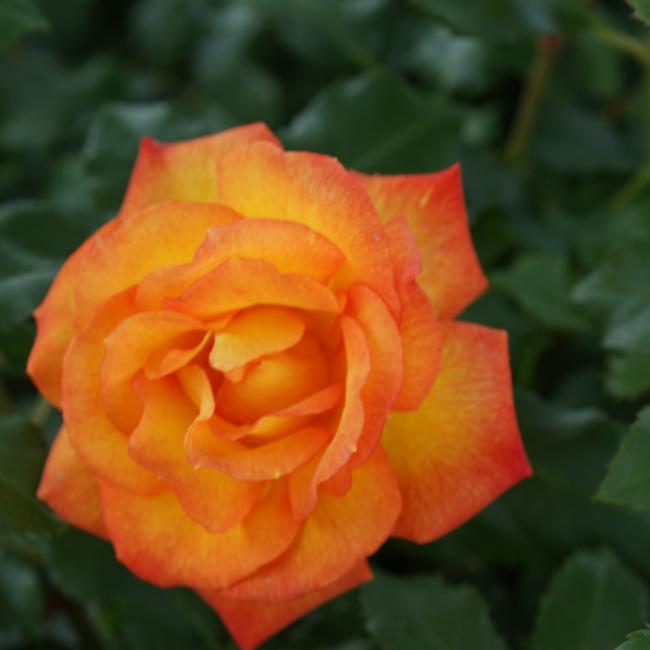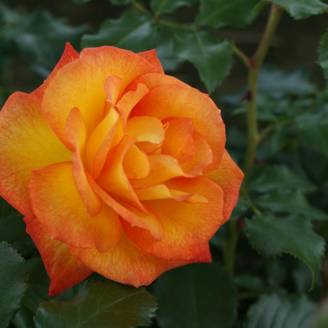 Een overvloedige bloei tot aan het eind van het seizoen zal deze krachtige struik nooit zonder bloemen staan. Warmgeel met oranje tinten naar het hart toe en verbloeien naar citroengeel. Een zeer krachtige en gezonde heesterroos met glanzend blad.
