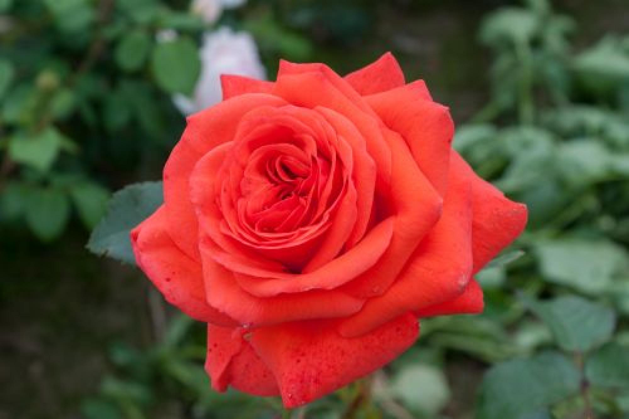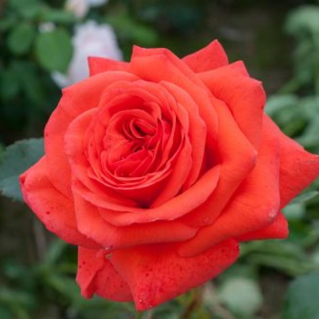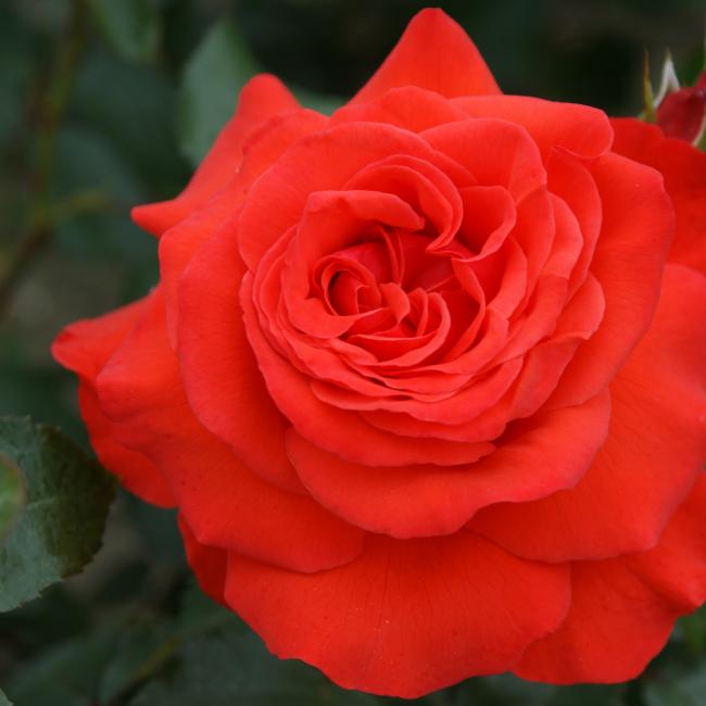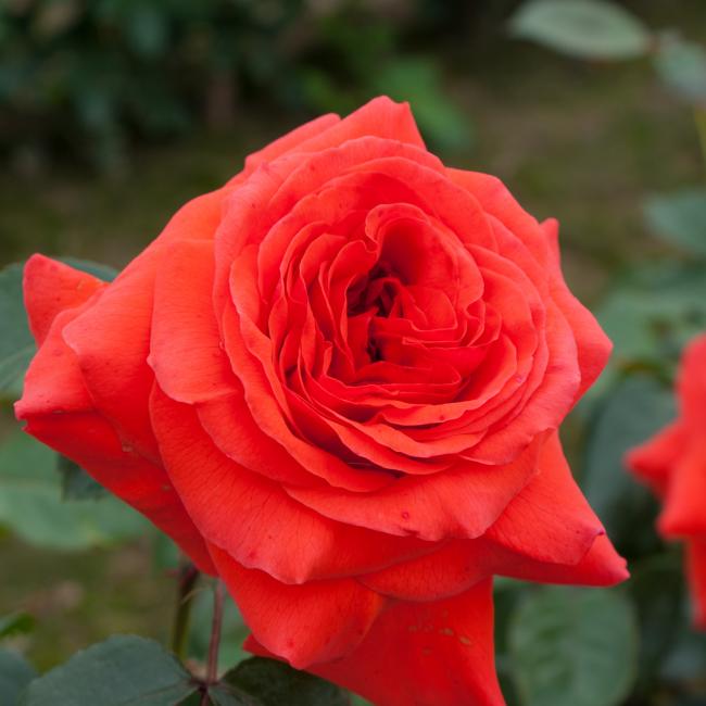 Deze doorbloeiende roos heeft lichtend oranje, grote, dik gevulde bloemen en blad dat donkerrood is als het uitloopt en later glanzend groen wordt. Een robuuste klimroos, prachtig in combinatie met paarse climatis.
