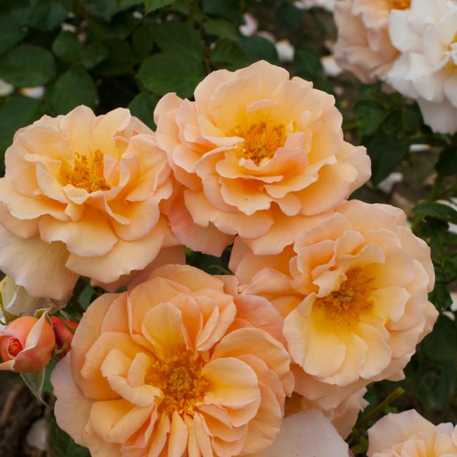 Deze trosroos heeft een heel kleurenpallet. Van zalm oranje en geel dat verbleekt naar licht oranje, abrikoos. De bloemen zijn middelgroot en met een rozet gevuld. Zeer lieflijk en een dankbare bloeier. Deze roos bloeit in grote trossen, en groeit rechtop. Heeft gezond donker groen blad.