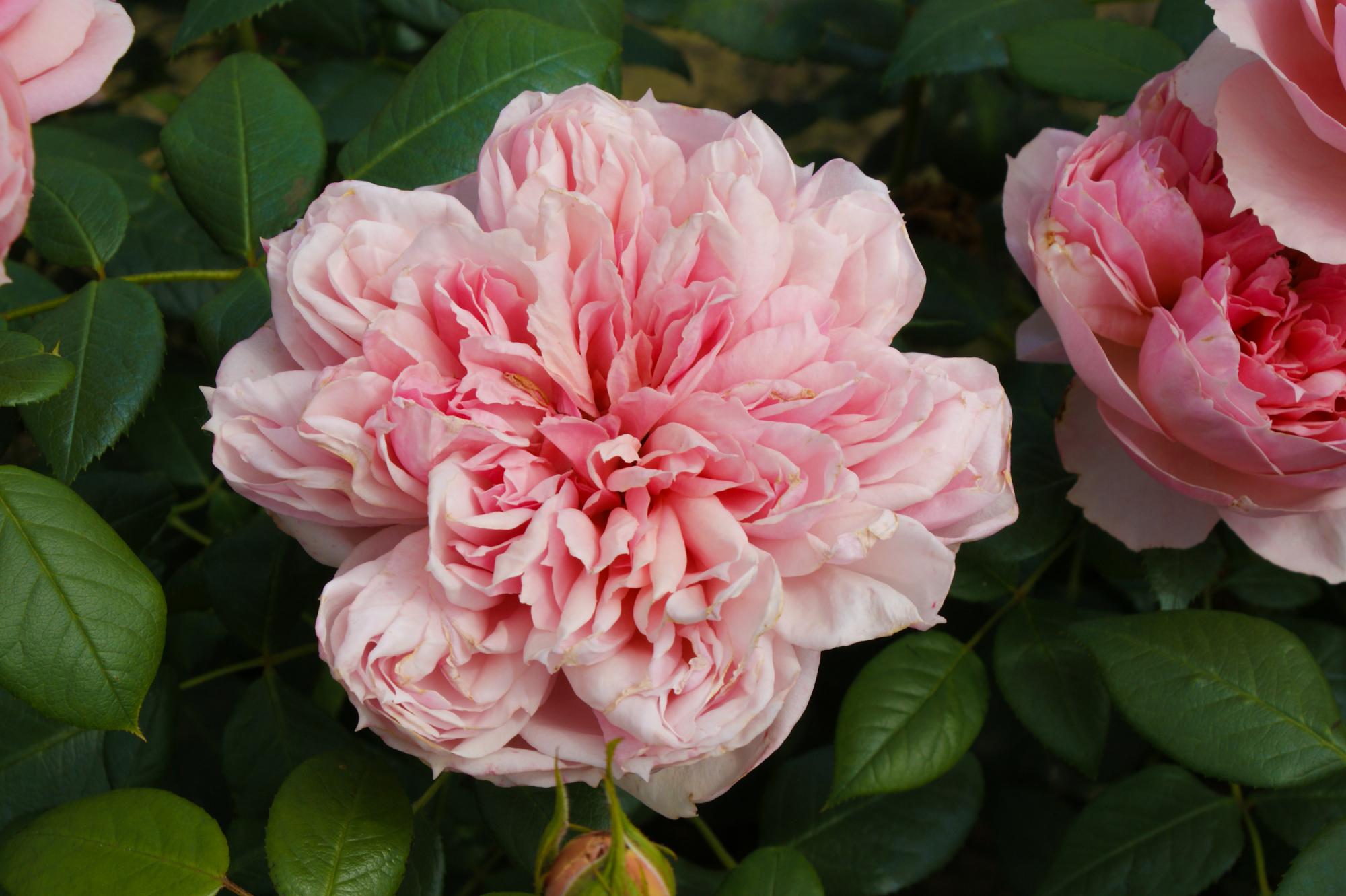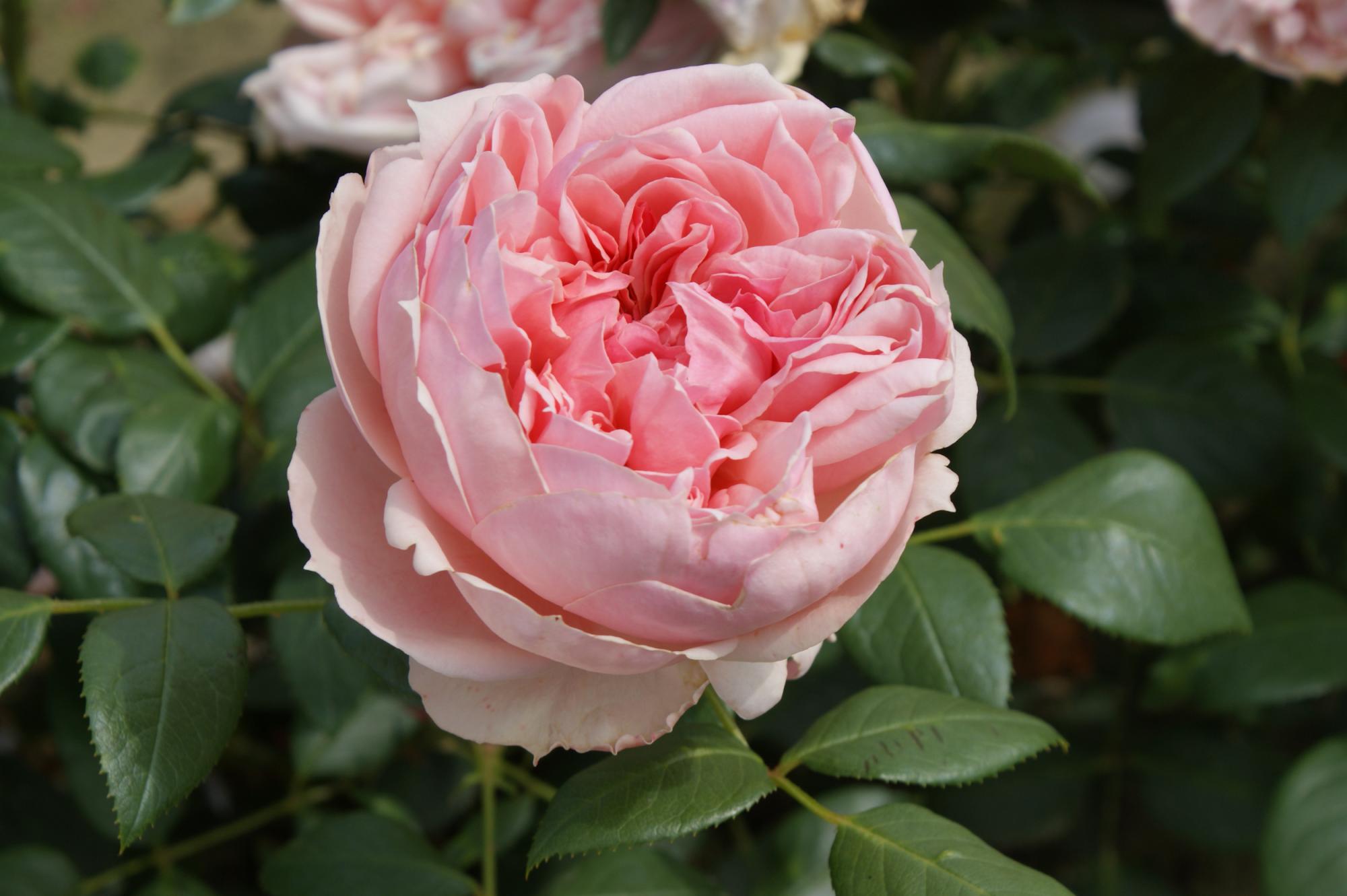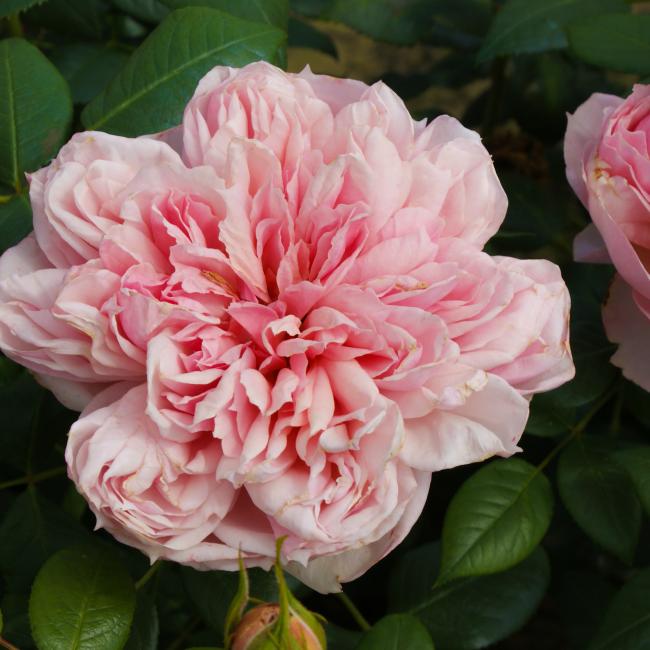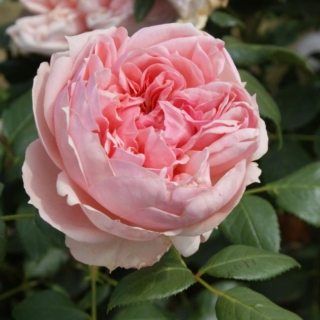 Zacht roze roos. dik gevulde bloemen. Sterk geurend