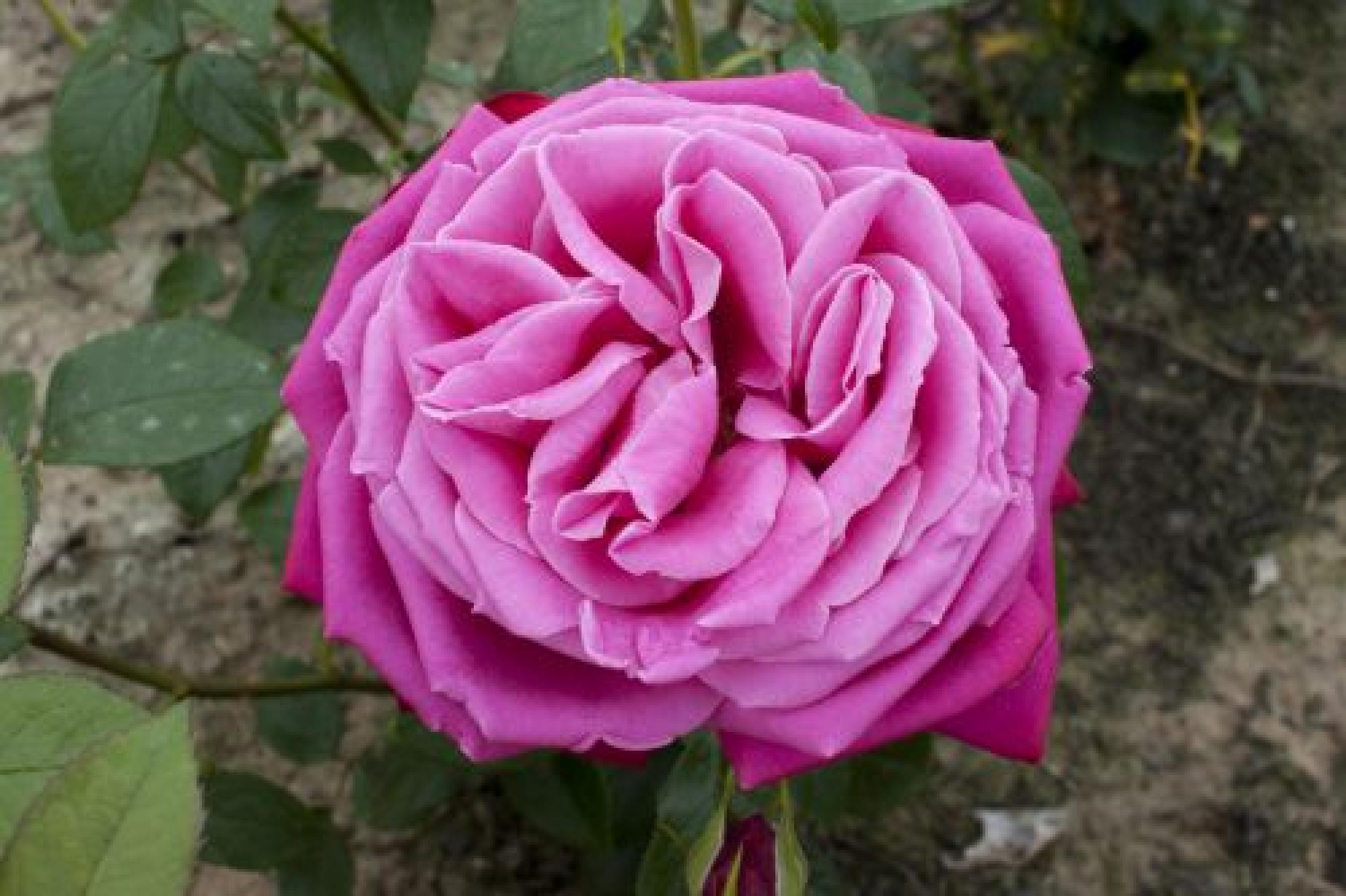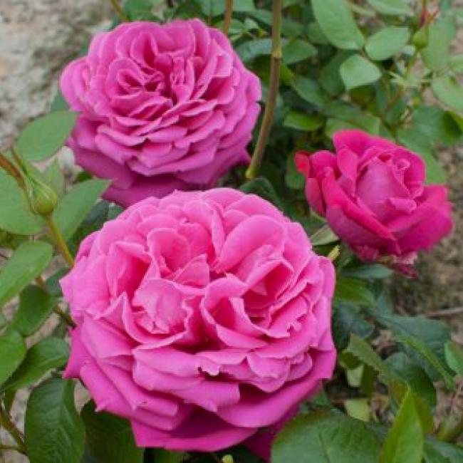 Opvallend dik gevulde, purper roze bloemen staan te pronken aan deze rechtopgaande struik. Aan elke steel 1 dikke bloem met een sterke damascus geur. Deze opvallende verschijning is geschikt om als snijroos te gebruiken. Heeft grof donkergroen loof.
