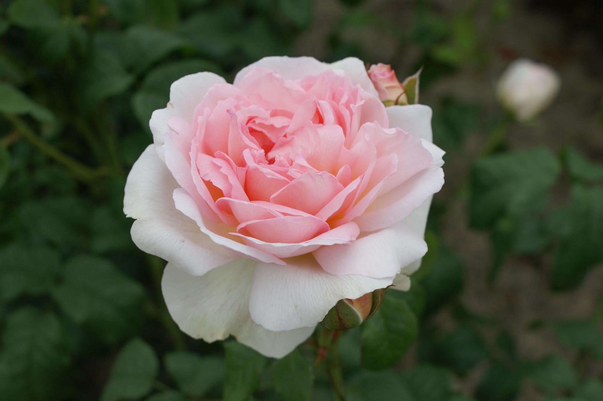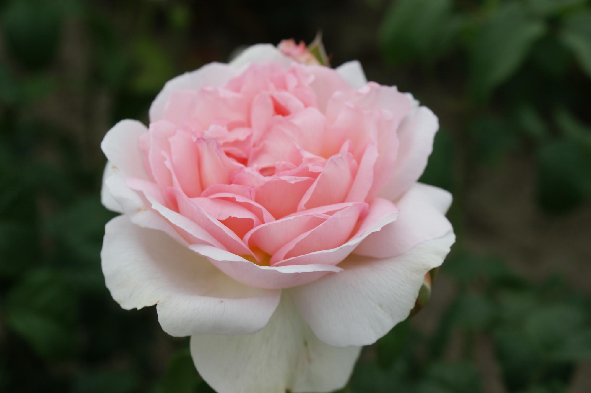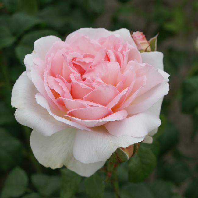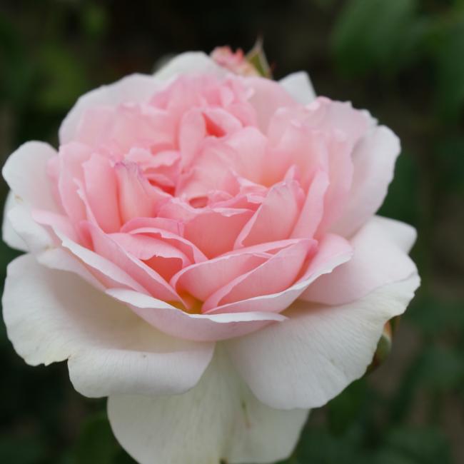 Blush roze, crèmige tot wit. Een heel lieflijk kleurtje. Kleinere, dik gevulde, komvormige roosjes met rozetten. Heeft iets glanzend blad.