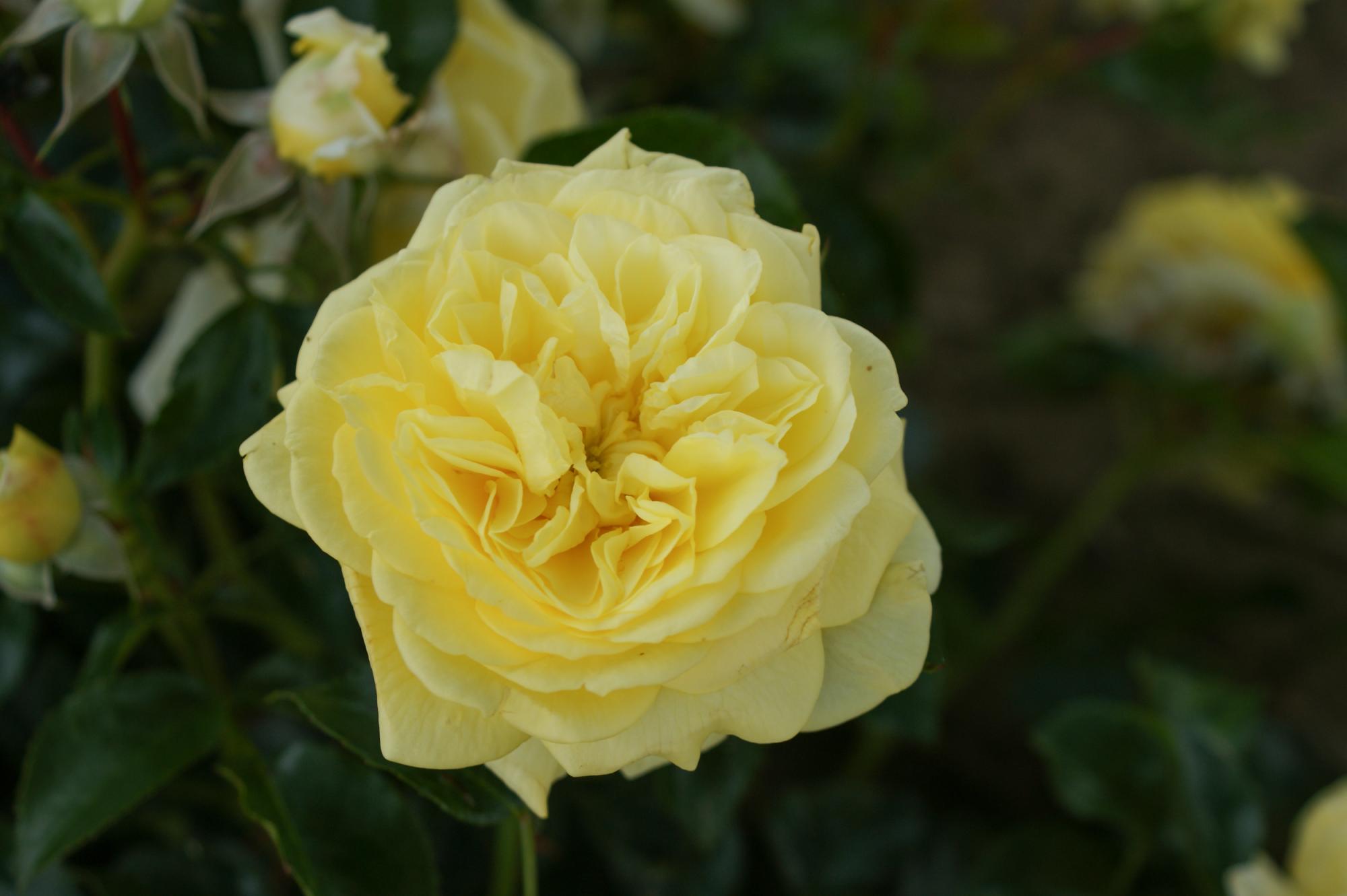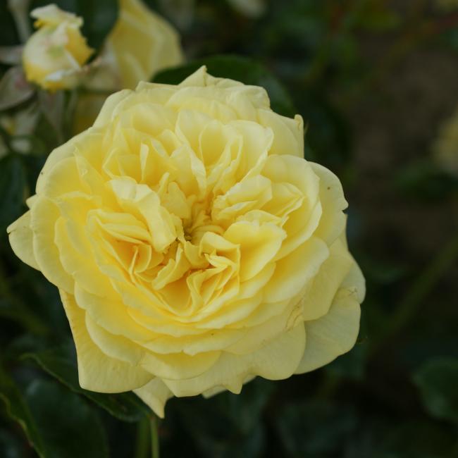 Een zeer gezonde heesterachtige trosroos. Deze roos groeit zeer bossig en heeft compacte groei. De citroen gele tot gele bloemen zijn plat van vorm en een hebben een rozet. Deze dankbare roos is geschikt als potroos en perkroos.