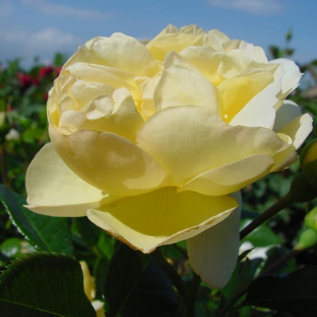 Buitengewoon grote bloemen met een doorsnee van 7 cm. Een zongele kleur die deze half struikachtige, half bochtige groeiende soort siert. De bladeren zijn middelgroen die deze gele kleur nog eens extra laten spreken. In het algemeen een sterke roos die voor alle beplantingen en zelf ook voor in pot geschikt is. Erg dankbaar!