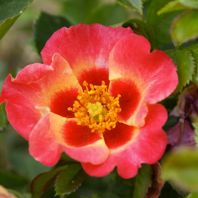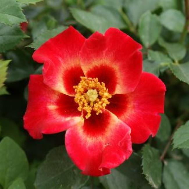 Deze zeer bijzondere en geheel nieuwe type roos behoord tot een compleet nieuwe serie rozen. Deze zijn compact, vormen enkelbloemige bloemen en produceren een rijke weergave van de kleuren rood, geel, roze of oranje bloemen met een opvallende centrum in een contrasterende kleur.