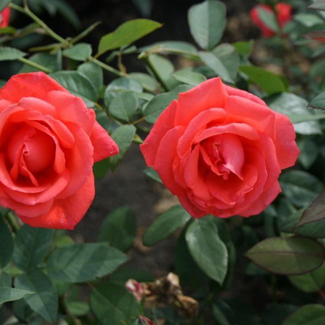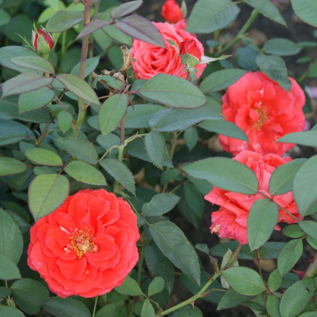 Deze geurroos met bijzonder edel gevormde knoppen en bloemen in een onovertroffen, niet verblekende zalm-oranje kleur staande op ranke sterke stelen. Deze plant is een goede groeier.
