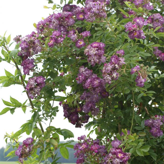 Schmidt 1909, Een zeer uitbundige klein bloemige klimroos. Bloeit eenmalig. De bloemetjes zijn lavendel blauw- lila, en hebben een wit hartje. Bloemen zijn dun en los gevuld en iets geurend. De zwierige takken zijn nagenoeg doornloos. Het is een sterke groeier ,die onder de Ramblerrozen valt. Dit zijn rozen die goed gedijen in een half schaduw achtige omgeving en makkelijk 3 tot 4 m hoog worden.