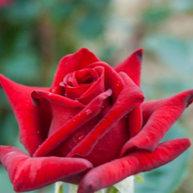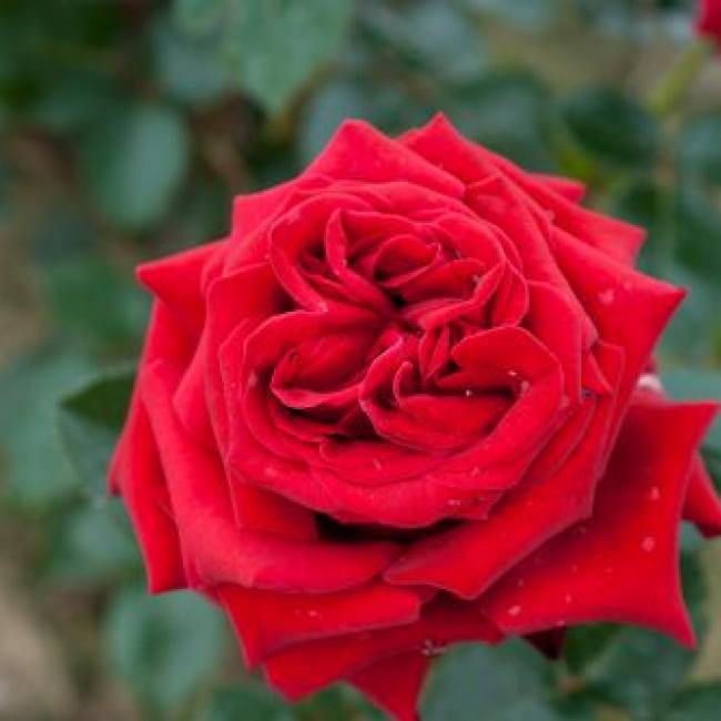 Klassiek gevulde, diep donker rode bloemen staan te pronken aan deze prachtige roos. De bloemen staan op lange stelen met donkergroen glanzend blad. Geschikt als snijroos!