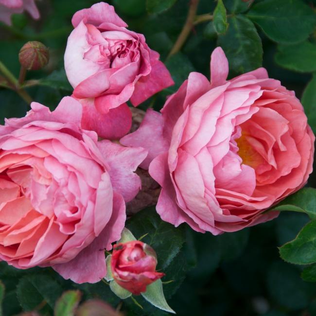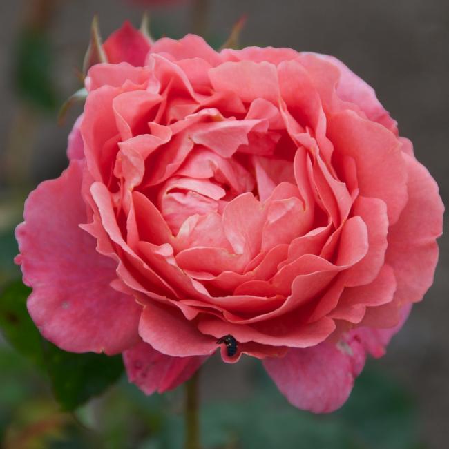 Oranje zalm met roze gloed. Roos met Engelse allure. Sterk geurend.