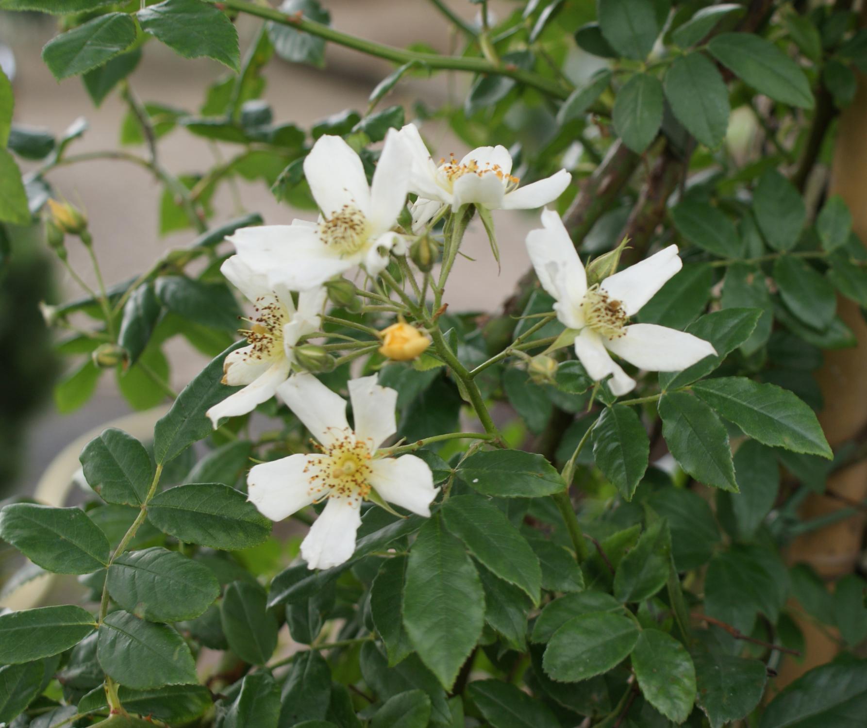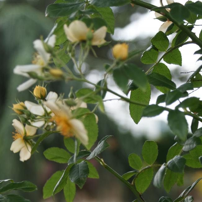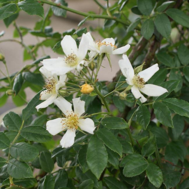 Uit licht gele knoppen ontstaan witte, enkelvoudige bloemen. De meeldraden zijn duidelijk zichtbaar. Deze ramblerroos is uitermate geschikt om in oude fruitbomen te laten groeien. Is zeer groeikrachtig en kan wel tto 9 a 10 meter hoog worden. Niet geschikt voor kleine tuinen. In de herfst komen er nog kleine botteltjes aan,