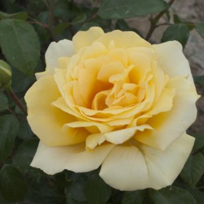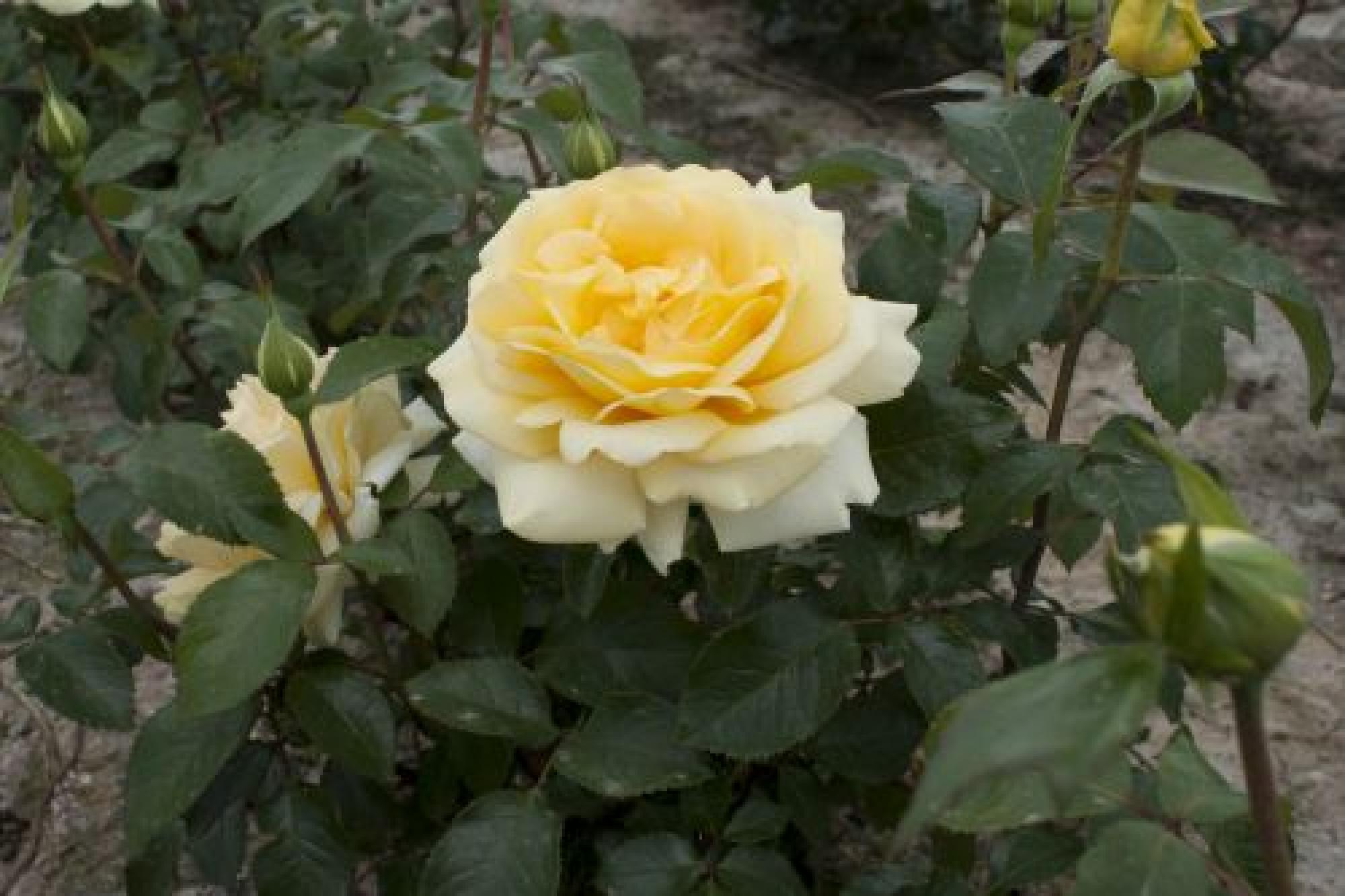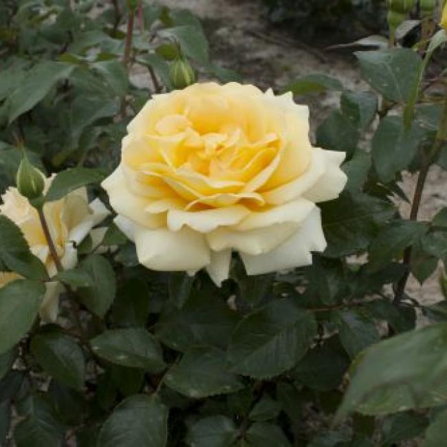 Licht gele, grote, dik gevulde bloemen staan te pronken aan deze roos. Deze roos behoord tot een geheel nieuwe groep rozen die ontwikkeld zijn wegen hun compacte groei in combinatie met uitzonderlijk grote bloemen. Deze roos is hiermee erg geschikt als potroos. Maar natuurlijk ook als perkroos. Het is een gezonde en dankbare roos. Een aanrader!