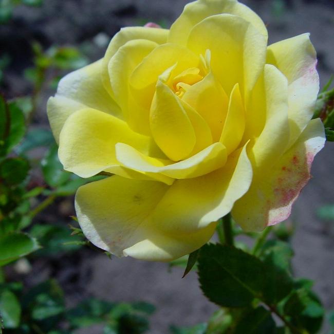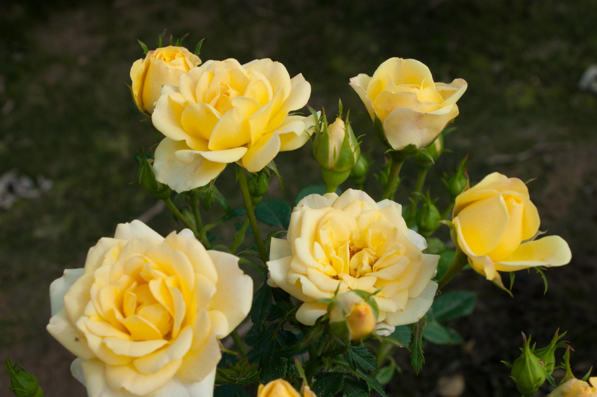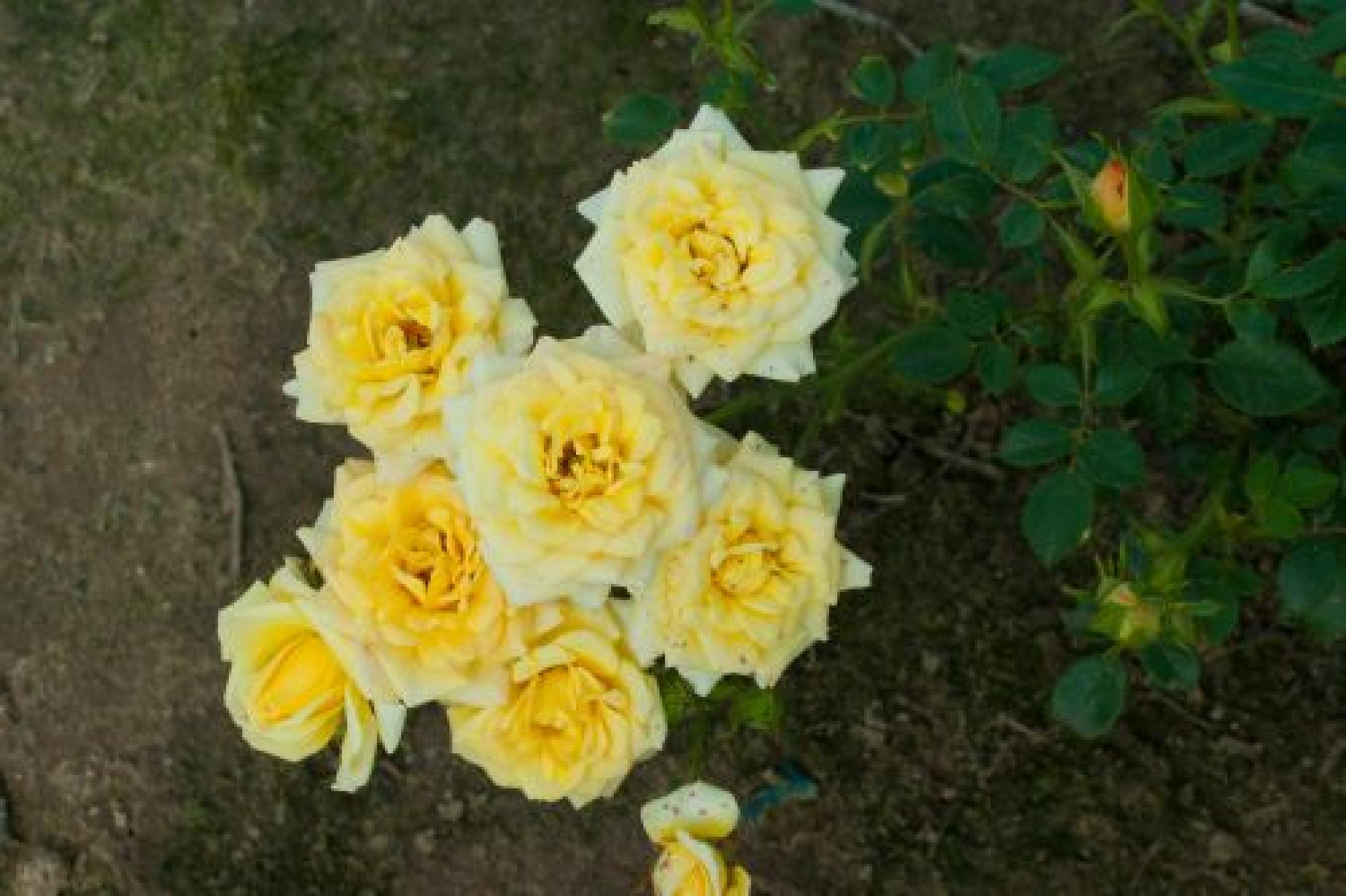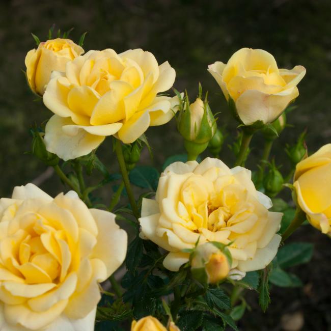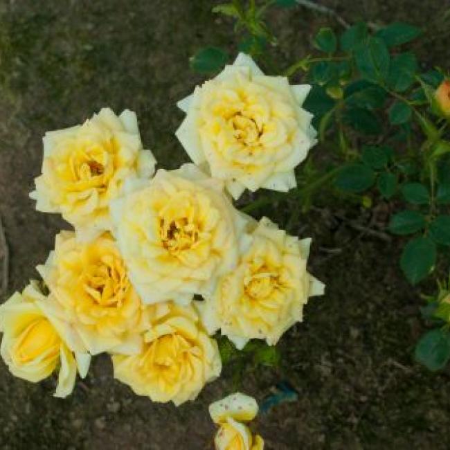 Zeer dankbare laagblijvende heesterroos. Krijgt grote trossen met kleine, gele, gevuld bloemen. Een zeer dankbare roos. Heeft lichtgroen glanzen blad.